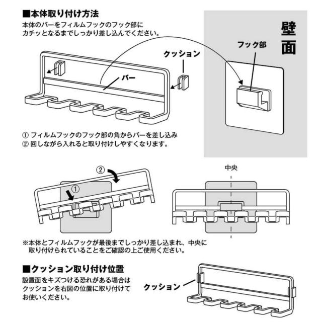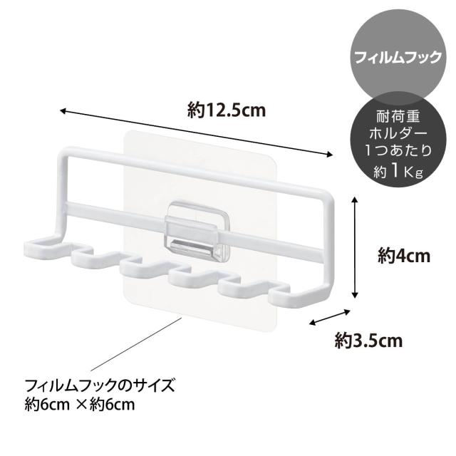 | サイズ | 約 幅12.5×奥行3.5×高さ4(cm) フィルムフック接着面:約幅6×高さ6(cm) |
