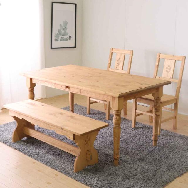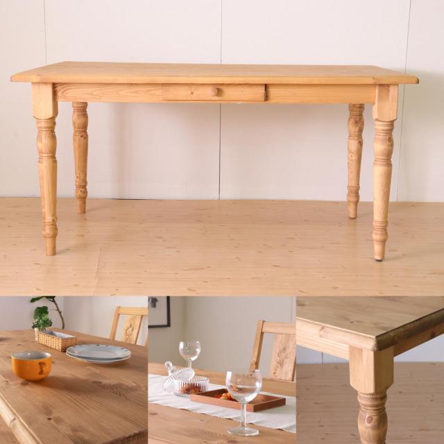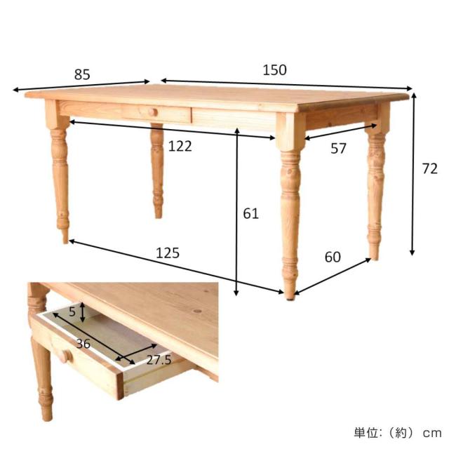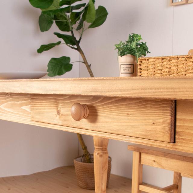 ダイニングテーブル 幅150cm 4人掛け 天然木 カントリー調 ( 木製 テーブル ダイニング北欧 カントリー調 テーブルのみ 引き出し付き パイン材 パイン 無垢 北欧風 ナチュラル 木目調 )