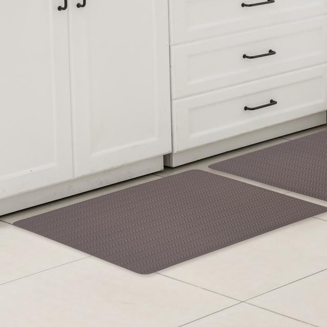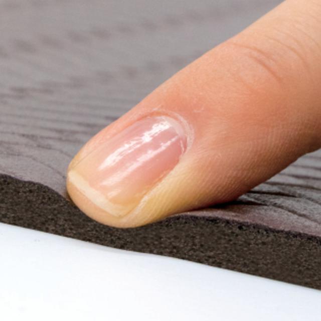 程よい厚みとクッション性のあるソフトな踏み心地で、長時間の立ち仕事でかかる足への負担を軽減してくれます。また、物が落下しても衝撃を吸収し、床を傷やヘコミから守ります。