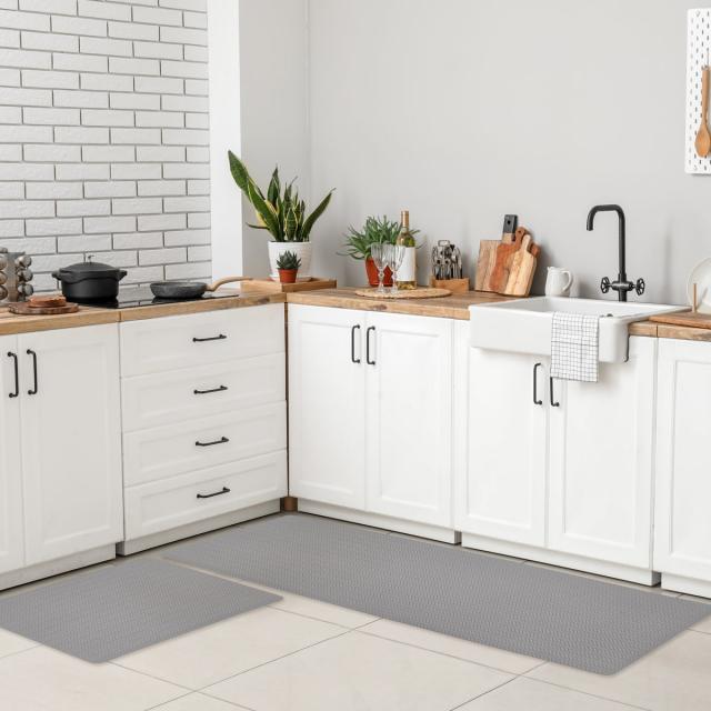●水に強い塩化ビニル素材の拭けるキッチンマットです。