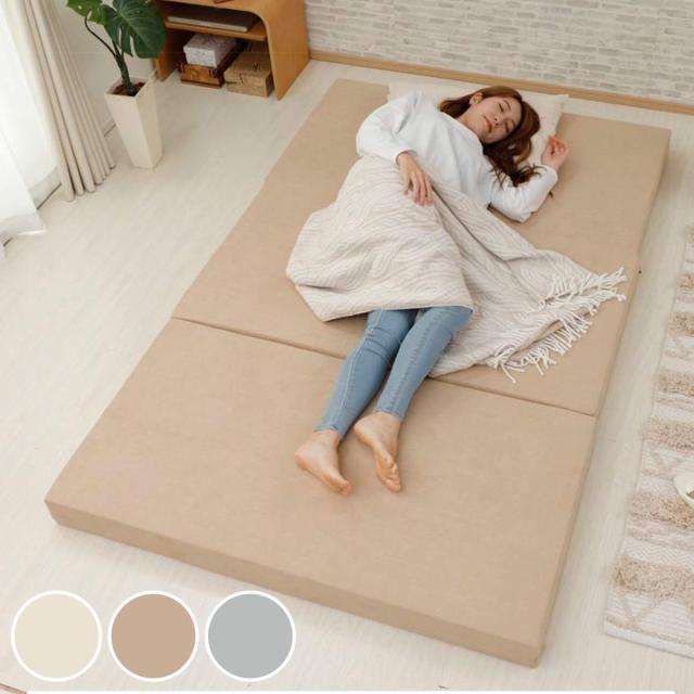 マットレス セミダブル ウレタン 三つ折れ 立て掛け収納 ( 3つ折り 折りたたみ フロア ベッド ベット 幅 120cm 厚さ 約 10cm 日本製 スウェード調 ふわもこ くすみカラー アイボリー ベージュ グレー )