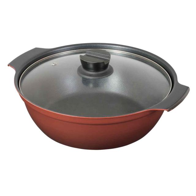卓上鍋 26cm IH対応 ガラス蓋付き 旨味 ( ガス火対応 オール熱源対応 両手なべ 両手 鍋 なべ ガラス蓋 26センチ フッ素加工 アルミ製 フタ付き 季節鍋 寄せ鍋 2〜3人用 卓上なべ )