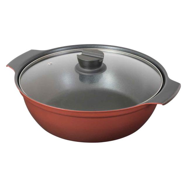 卓上鍋 28cm IH対応 ガラス蓋付き 旨味 ( ガス火対応 オール熱源対応 両手なべ 両手 鍋 なべ ガラス蓋 28センチ フッ素加工 アルミ製 フタ付き 季節鍋 寄せ鍋 3〜4人用 卓上なべ )