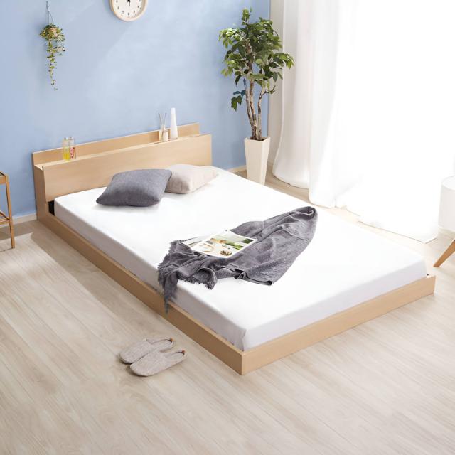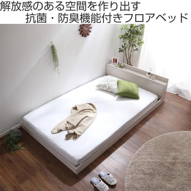 フロアベッド セミダブル すのこ 2口コンセント付 宮棚 抗菌防臭 ( ローベッド ベッド 低床 ロータイプ ベット フレーム 木製 木目調 棚付き コンセント おしゃれ モダン シンプル )