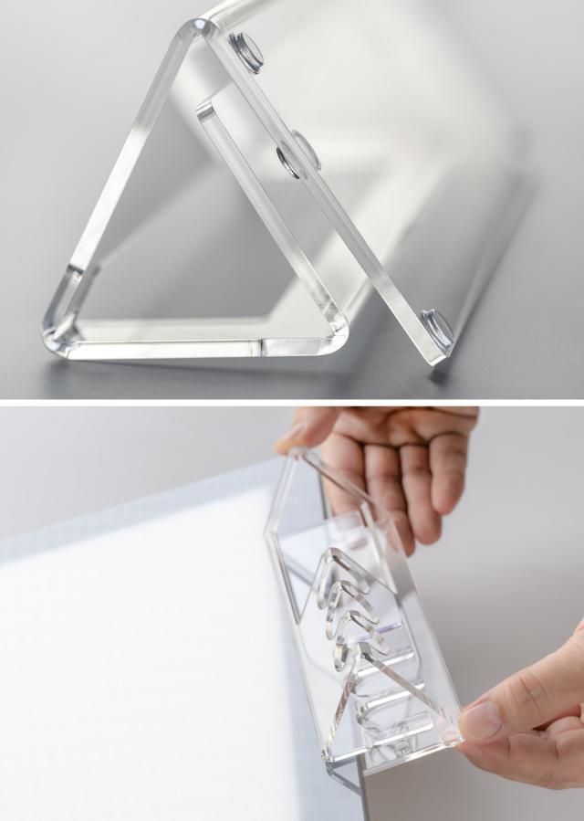 スタンドはA3サイズのトレース台に2個、A4、B4サイズのトレース台であれば1個取り付けが可能です。トレース台に保護シートを付けたままでも取り付けできます。