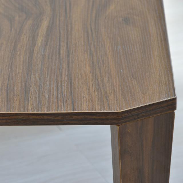 メラミン加工の天板は、天然木をイメージした木目に薄い凹凸加工が施されており、リアルな木の触感を再現しています。細細かな凹凸加工なので手触りも優しく、水汚れや熱にも強いのが特徴です。