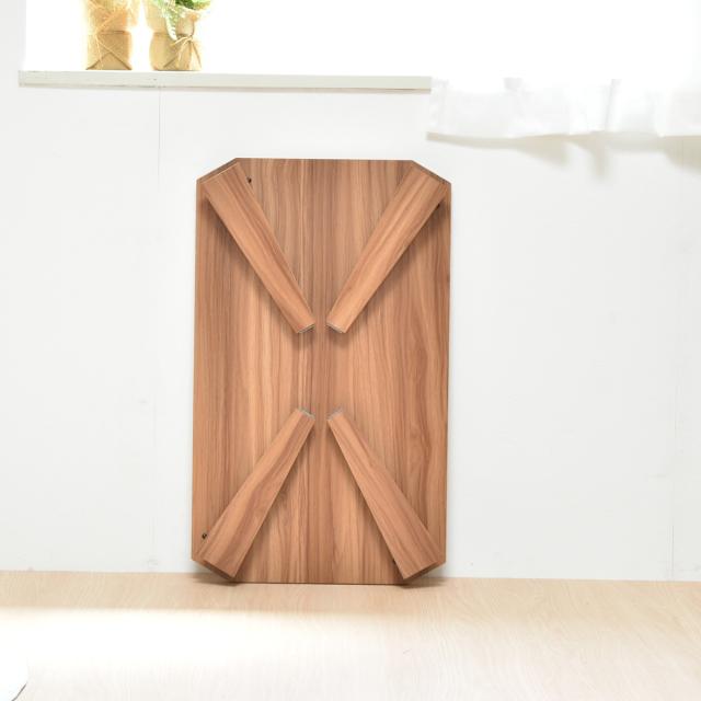 脚部にはフェルトの滑り止めが付いているため、床の傷防止にも効果的です。また、天板や脚の裏側まで木目調のメラミンシート張りになっているため、テーブルを裏返して置いても綺麗な面を見せることができます。