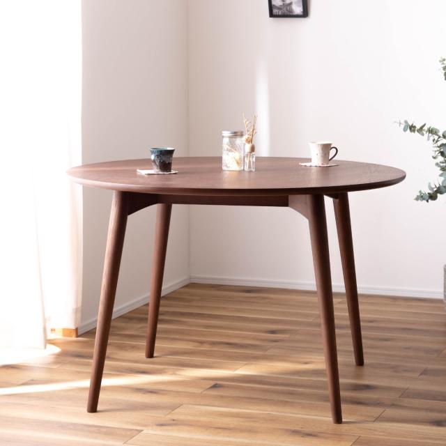 リラックスした時間を過ごせる円形のダイニングテーブル
