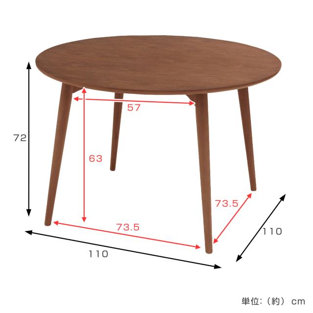 ダイニングテーブル 幅110cm 高さ72cm 円型 カラメリ ( 丸 テーブル 円形 ラウンド 食卓テーブル 食卓机 2人掛け 4人掛け 北欧 おしゃれ ナチュラル シンプル モダン 木目調 ブラウン )