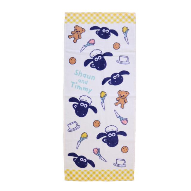フェイスタオル ひつじのショーン ポピーチェック 34×80cm ( タオル 顔拭きタオル 手拭き 綿100 吸水 ディスニー ショーン 汗拭き 汗拭きタオル バス用品 バスグッズ 洗面 キャラクタータオル )