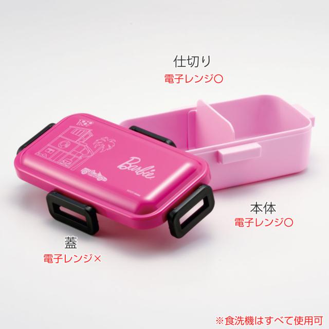 お弁当箱 抗菌ふわっと弁当箱 1段 530ml バービー ( ランチボックス 食洗機対応 レンジ対応 一段 抗菌 ドーム型 4点ロック 仕切り付き 日本製 女性 女子 食洗機OK レンジOK お弁当 弁当 抗菌加工 弁当箱 530 )