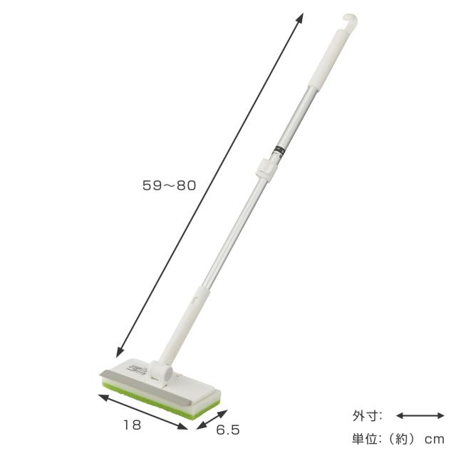 高い所や浴槽の底も洗いやすい伸縮柄です。浴槽外からも服を濡らさずにお掃除できます。