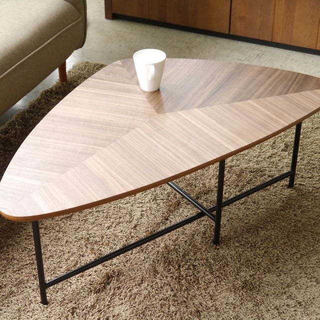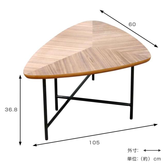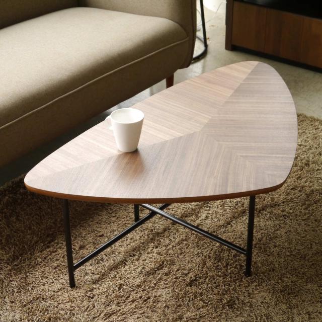 ローテーブル おしゃれ 大きめ 北欧 木目 幅105cm ( センターテーブル リビングテーブル テーブル 三角 トライアングル ウォールナット スチール脚 レトロ モダン )