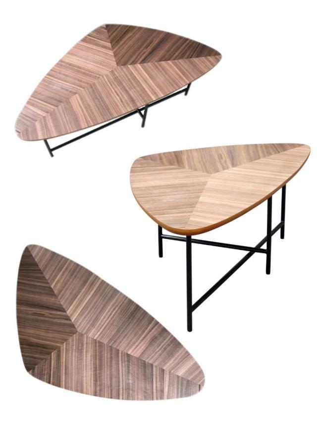 ウォールナット突板を組み合わせたデザインテーブル