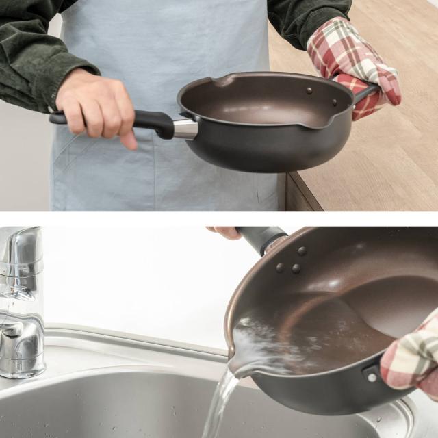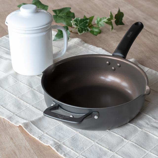 補助取っ手付きで持ち運び簡単な、超深型フライパン