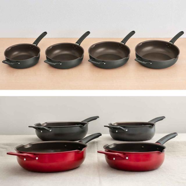 デュラブルシリーズのマルチパンは、24cm〜30cmまでの4サイズ展開で、用途に合わせてお選びいただけます。IH対応タイプとガス火専用タイプがあるので、ご家庭の熱源に合わせてお選び下さい。