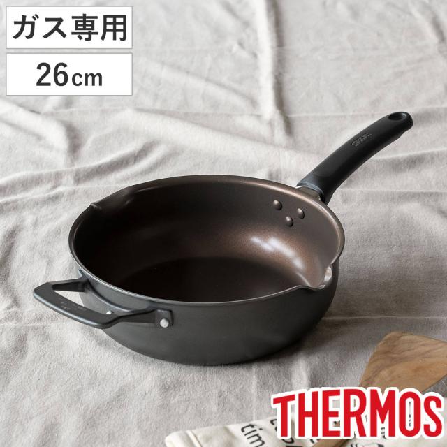 フライパン 26cm ガス火専用 取っ手付き デュラブルシリーズ マルチパン ( サーモス THERMOS ガス火対応 直火専用 片手鍋 炒め鍋 深型 ふっ素加工 軽い 26センチ フッ素加工 補助取っ手付き フライパン 深型 フライパン 26cm)