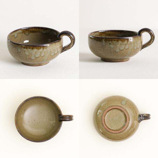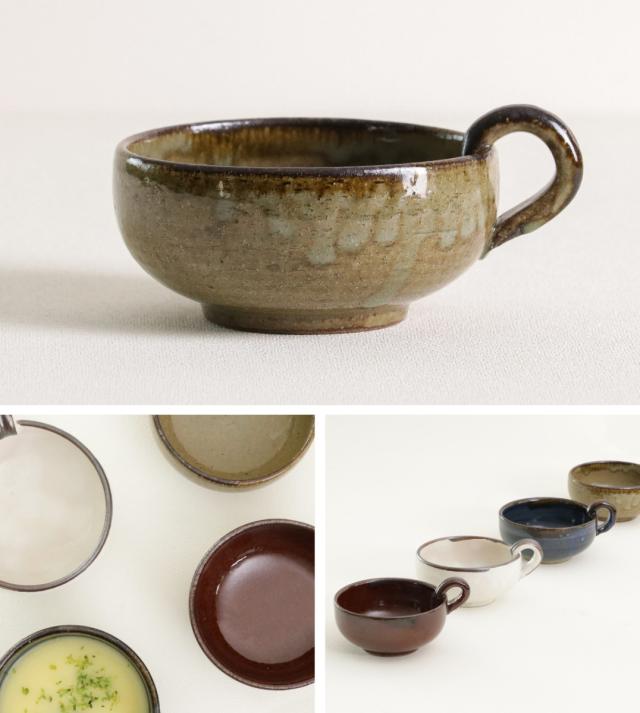 ぷっくりとしたフォルムが愛らしい、持ち手付きのとんすいです。手仕事が感じられる温かみのある和食器に、煮物などの和食はもちろん、ポタージュやポトフなどを合わせてもしっくりくる器です。