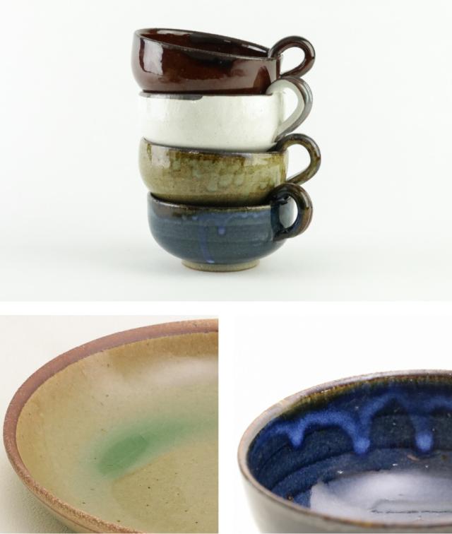 質感を愉しめることも釉薬ならではの魅力。艶のあるガラスのような質感と素焼き部分の素朴さに魅せられます。釉薬の思いもよらない動きをあらわにした溜まり部分や流れが、世界に一つしかない個性を出して使う度に愛着が湧いてきます。