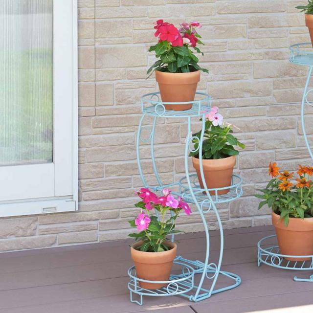フラワースタンド 心春 S型 折りたたみ フラワーラック S ブルー ( プランター スタンド ココハル ガーデニング用品 花台 鉢置き 園芸 鉢台 プランタースタンド 水色 5号鉢 6号鉢 5kg プラントスタンド 鉢スタンド 3段 )