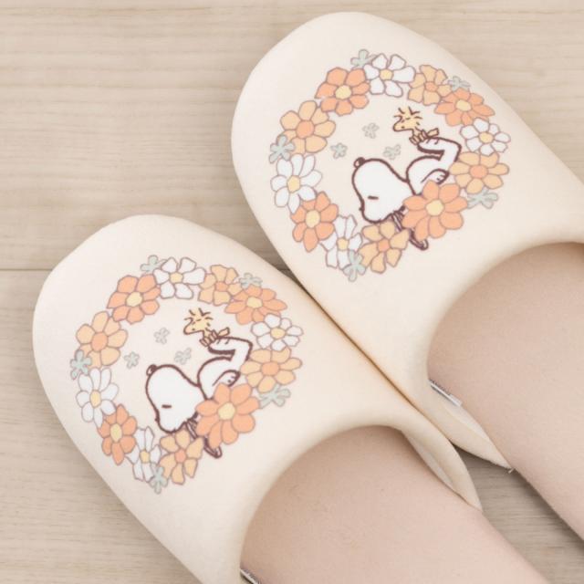 スヌーピーの花いっぱい フリーサイズのスリッパ