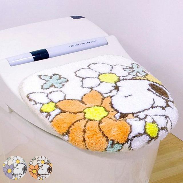 スヌーピー 花いっぱい トイレふたカバー 普通用・洗浄用兼用タイプ ( 蓋 フタ カバー 吸着タイプ 吸着 トイレ ふたカバー トイレタリー トイレカバ— PEANUTS ピーナッツ SNOOPY )