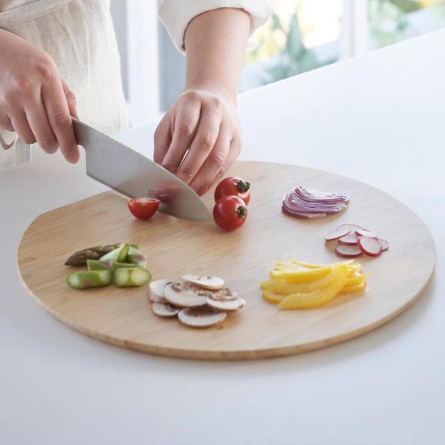 一度に食材をカットできる丸いまな板