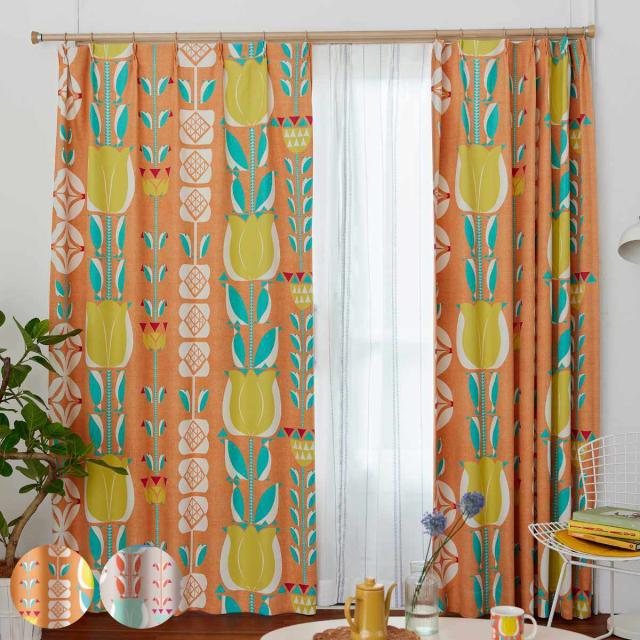 カーテン 遮光3級 チューリッペン 100×200cm 1枚入り スミノエ ドレープカーテン ( ドレープ 1枚 3級遮光 遮光 既製品 チューリップ 柄 ウォッシャブル インテリア レトロ 花柄 1.5倍ヒダ 日本製 )