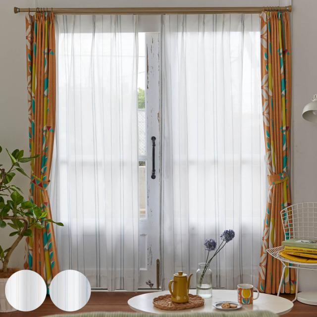 レースカーテン ステッチライン 100×133cm 1枚入り スミノエ シアーカーテン ( カーテン レース 既製品 1枚 シンプル ウォッシャブル インテリア ストライプ 1.5倍ヒダ 日本製 )