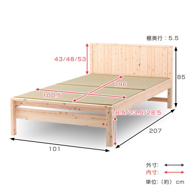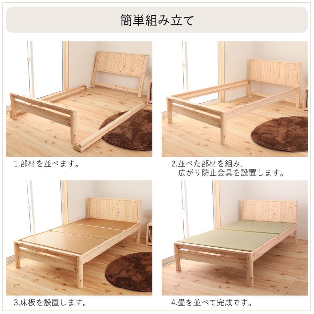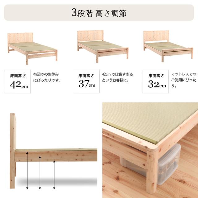 畳ベッド シングル 国産ひのき 簡単組立 天然木 日本製 ( 畳 い草 い草ベッド い草床板 ひのき ヒノキ ベッド ベッドフレーム ベット 木製 並べて使える 防虫 殺菌 防ダニ 高さ調節 ナチュラル 和 モダン シンプル )