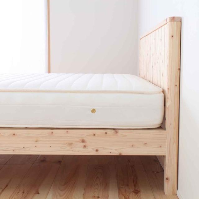 島根県産・高知四万十産のヒノキをふんだんに使用したすのこベッドです。無塗装仕上げで、使うほどに味わいを増す天然木の良さをそのまま生かしました。きめ細かく暖かみのある風合いは、年を経るにつれ飴色に変化していきます。