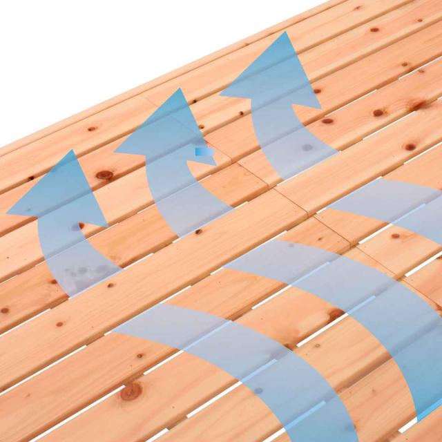 床面に、通常よりも細いすのこを採用することで、体圧を点で支え、お布団を敷いて使用した場合の寝心地をアップしました。軋みを抑える上、通常すのこの2倍の通気性があるので更に快適にお使いいただけます。