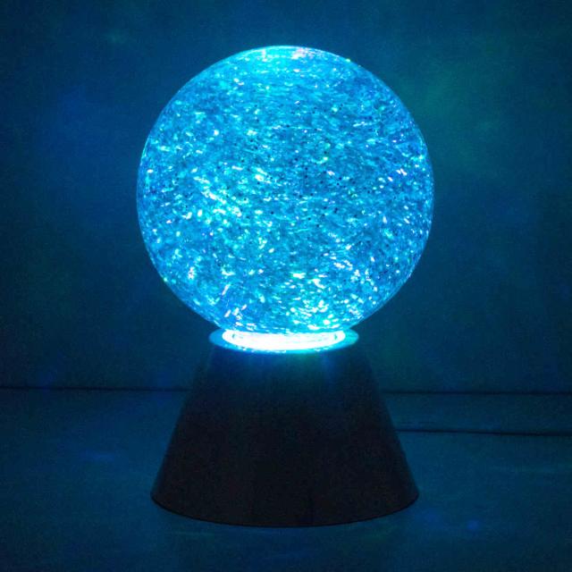 ●台座に乗った球体ランプがキラキラと輝きを放ちます。