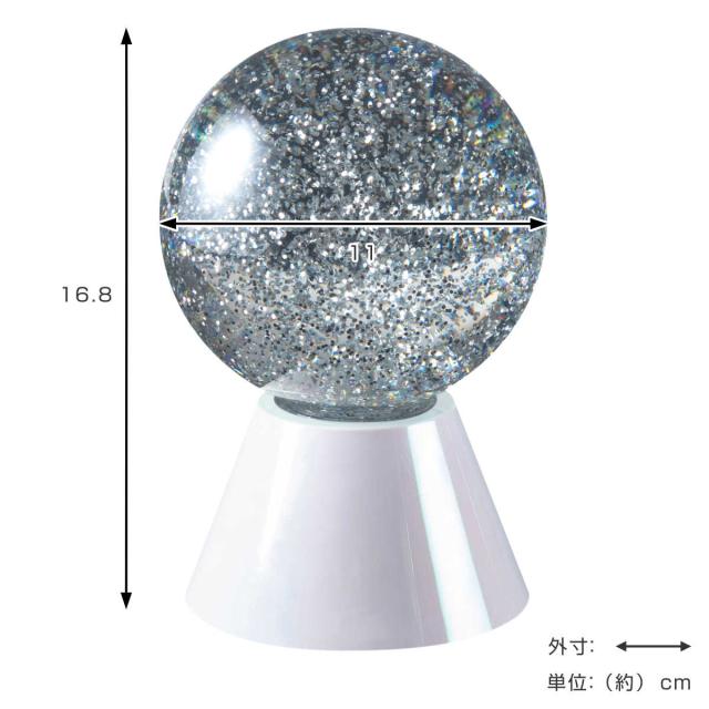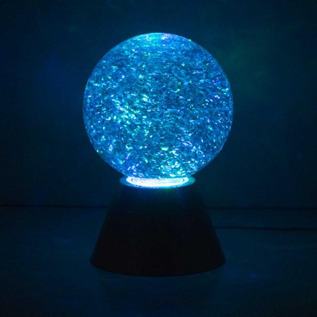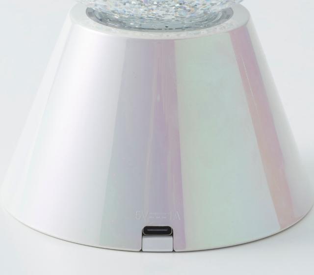 ランプを点灯させると、ボール内のグリッターがキラキラと反射し、色を変化させながら華やかな輝きを放ちます。幻想的な色の移り変わりを楽しめ、上質で優雅な雰囲気を演出します。
