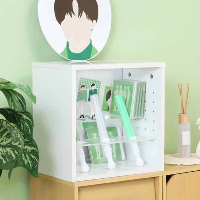 自分にとってイチオシの人、キャラクターグッズやコレクションを一ヶ所にまとめてディスプレイできる収納ボックスです。カラーはメンバーカラーが映えるように爽やかなホワイトです。