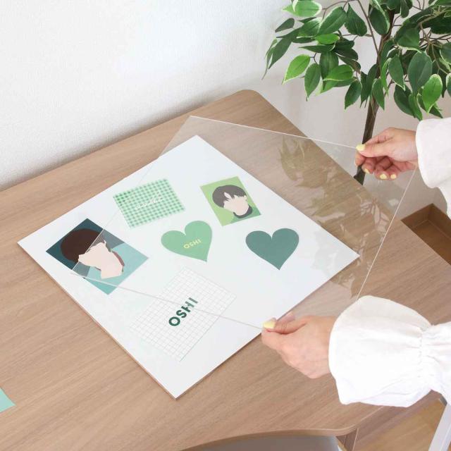 背板とアクリル背板の間に推しの写真やポスターなどを挟んで展示することができます。