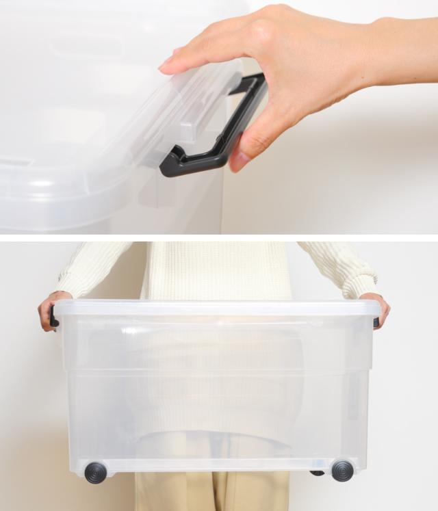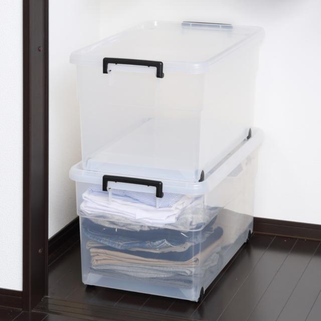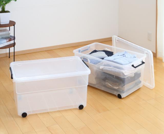 フタとキャスターが付いた大容量で頑丈な収納ボックス