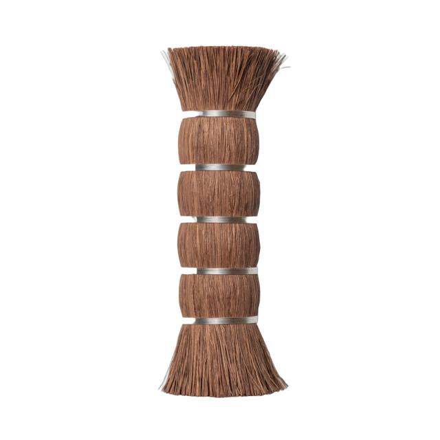 天然素材の棕櫚を国内外から厳選し、上質な物だけを使って作られた特別感溢れる、ささらです。ステンレス線を使い「綴り」と呼ばれる技法で棕櫚の繊維を束ねた、昔ながらのたわしです。繊維の一本ずつが点となって汚れをかき出すたわしと違い、ささらは面で汚れをこすり落とします。隅を洗うのに最適で、卵焼器の四隅までしっかり洗うことができます。また、コンロ周りのお掃除にも使いやすいです。