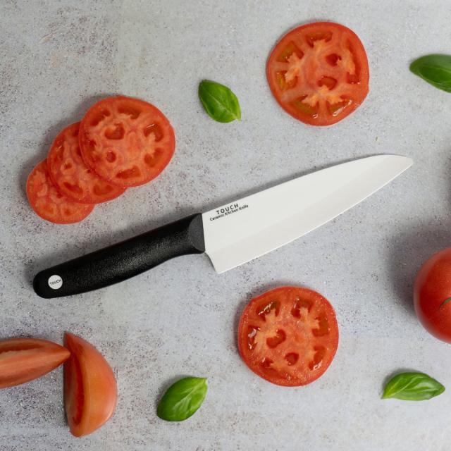 包丁 18cm セラミック製 TOUCH ( 三徳 料理包丁 食洗機対応 キッチンナイフ 日本製 18センチ 洋包丁 ほうちょう 庖丁 キッチンツール 下ごしらえ 錆びない 切れ味抜群 )