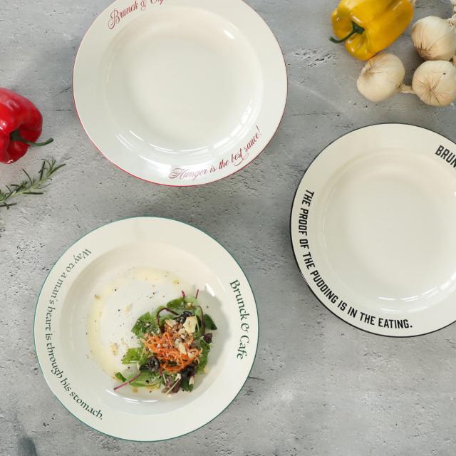バーガーショップで出てきそうな樹脂製のカフェ風クーププレートです。深さがあり、大人1人前のスープパスタの盛り付けなどに丁度いいサイズです。樹脂製なので割れにくく、軽いのが特徴です。