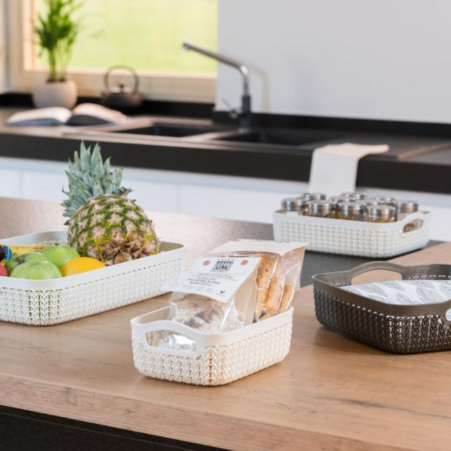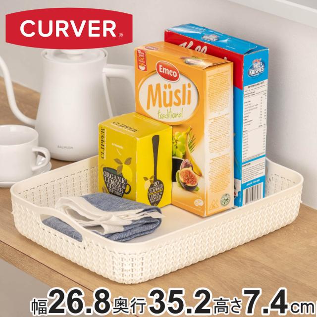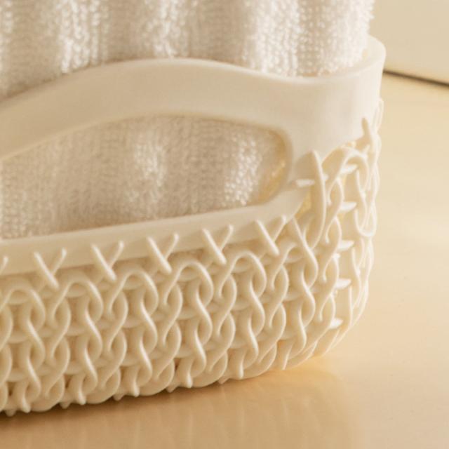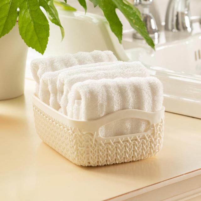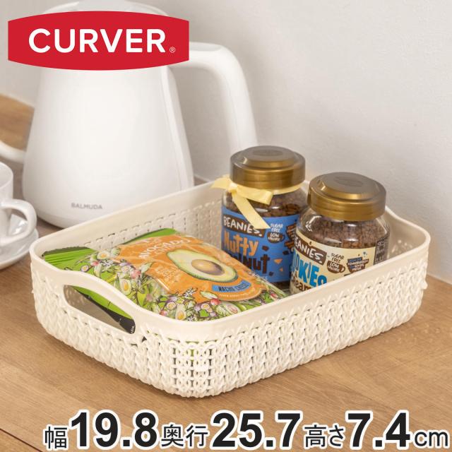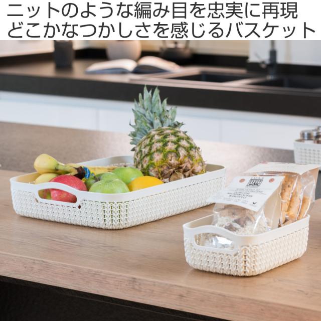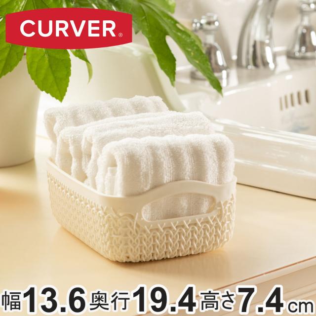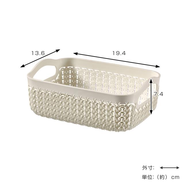 バスケット ニット CURVER A6 小物入れ ( 収納 手編みニット調 カゴ かご 幅13.6×奥行19.4×高さ7.4cm 小物収納 収納バスケット 持ち手付き 卓上収納 白 洗面所 キッチン 水回り おしゃれ ホワイト 収納ケース 収納ボックス )