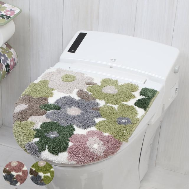 兼用蓋カバー フルール 蓋カバー トイレフタカバー トイレ ( マット ふたカバー セット フタ 蓋 トイレグッズ トイレの蓋 U型 O型 洗浄暖房 トイレタリー 花柄 ふわふわ ピンク グリーン )