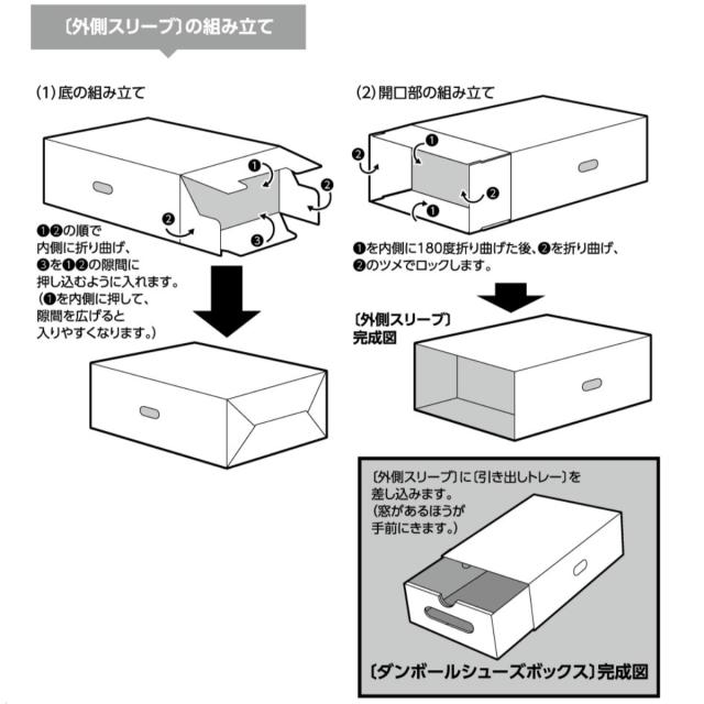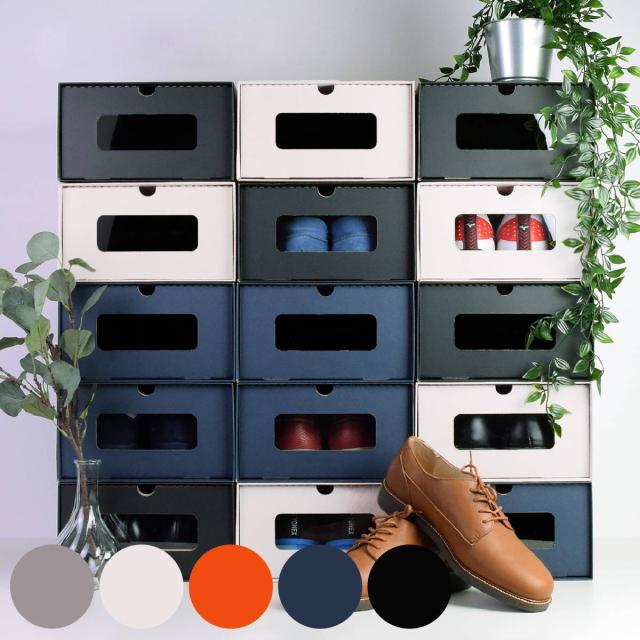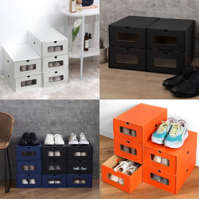組み立て簡単ダンボール製シューズボックス 同色8個入り
