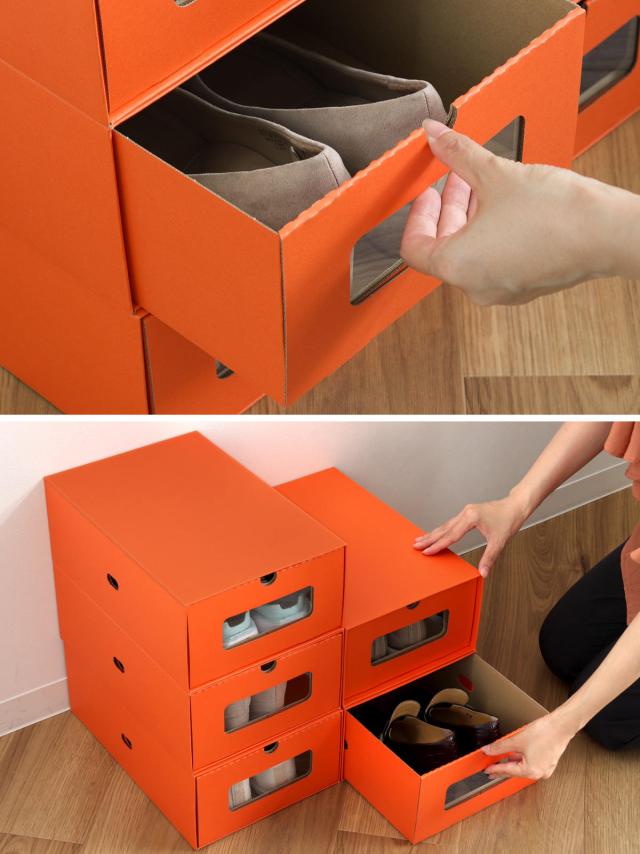 窓付きの引き出し式ボックスなので、靴以外にも様々な収納に使えます。