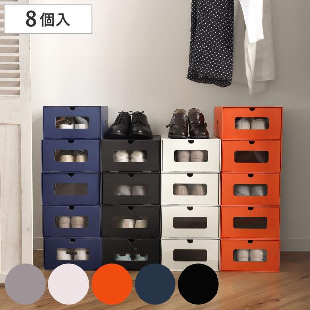 シューズボックス M 8個セット ダンボール 1足 ( シューズケース 窓付き 靴収納 靴 収納 ボックス 靴箱 収納ケース 段ボール 引き出し 収納ボックス 下駄箱 スニーカー 小物収納 衣類収納 キッチン シューズ メンズ レディース )