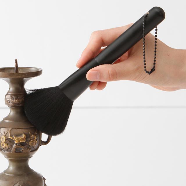 彫刻の細工がきめ細かい仏壇や、彫りの多い仏像、燭台や位牌などの仏具のホコリ払いに便利な、仏壇用の筆はたきです。筆タイプで毛先が柔らかいので、細かい隙間や手の入らない部分まで、ホコリを払うことができるのでとても重宝します。
