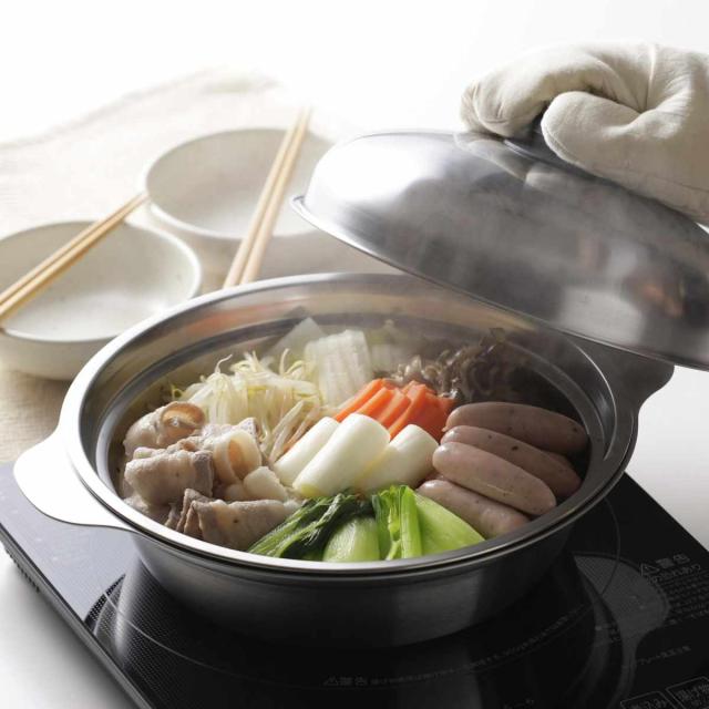 卓上鍋 24cm IH対応 ステンレス製 日本製 ( ガス火対応 オール熱源対応 両手鍋 24センチ 蒸し鍋 蒸し器 蒸籠 せいろ 土鍋風 寄せ鍋 ちりすき鍋 ステンレス鍋 調理鍋 おしゃれ )