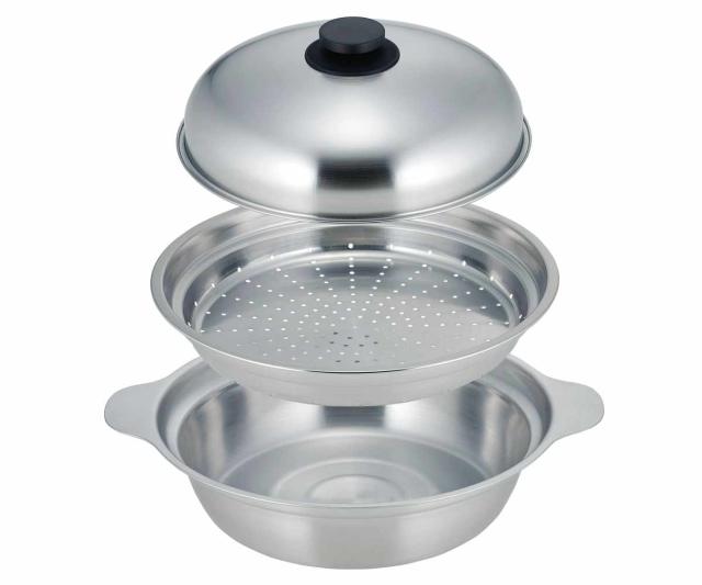 卓上鍋と蒸し器がひとつになった蒸し皿付きステンレス鍋