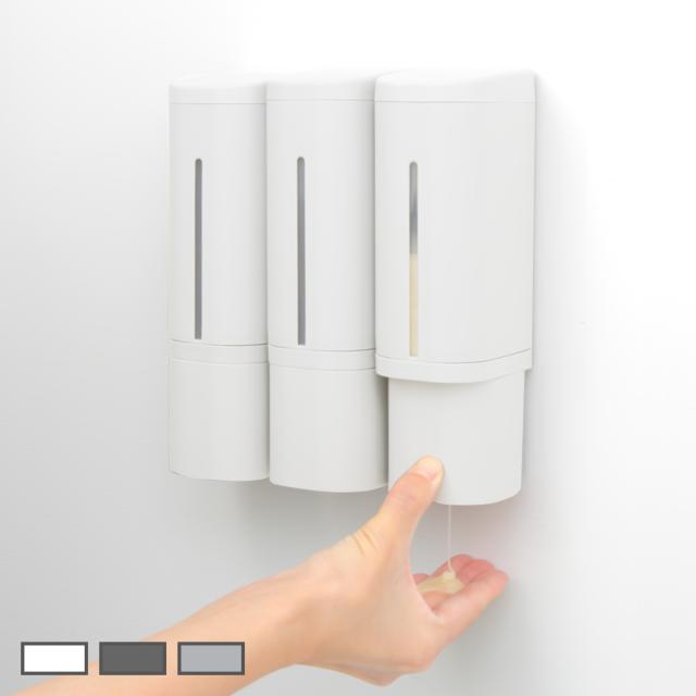 ディスペンサー 500ml リキッドタイプ マグネットタイプ 同色3個セット ホバー ( 液体 ソープディスペンサー 磁石 詰め替えボトル 壁面 3個 詰め替え プッシュ 壁付け シール付 シンプル ホワイト ダークグレー グレー )