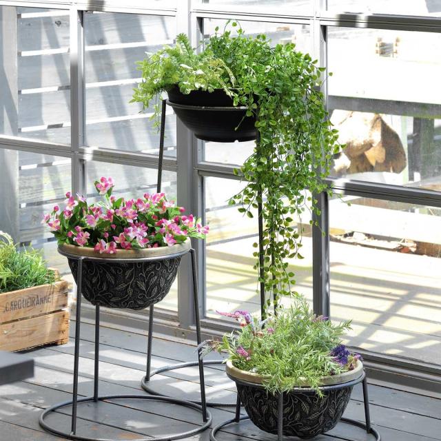 スチールを使用した頑丈でおしゃれなフラワースタンドです。鉢に高さを出すことでお庭を美しく演出してくれます。